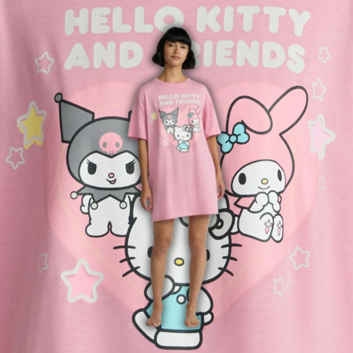 Hop over to Walmart and get a deal on Hello Kitty Women’s Graphic Sleep Tee. Features a playful My Melody, Hello Kitty and Kuromi graphic and a relaxed fit, perfect for wearing as you lounge around the house or cuddle in bed. Crafted in a soft, lightweight slub jersey, this sleep tee is perfect for keeping cool and comfy as you drift into sweet Sanrio sleeps. You might also like these Women’s Pajama Sets.