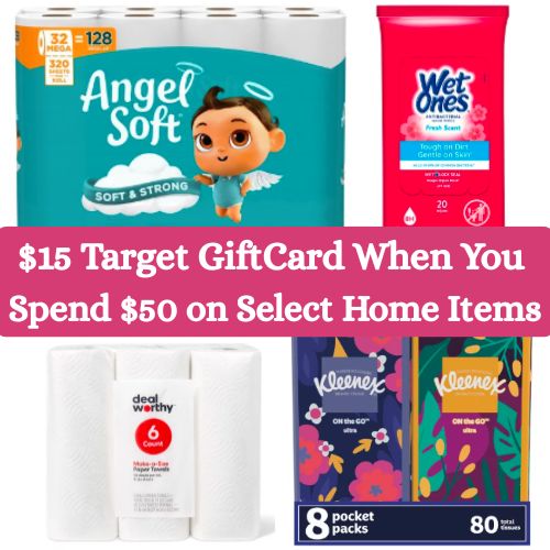 - Spend $50 on select home items and receive a $15 Target GiftCard