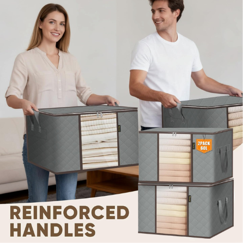 - The reinforced handles of the storage and organization bags provide easy portability between rooms or to a storage unit, with added stitching to support the bag’s weight.