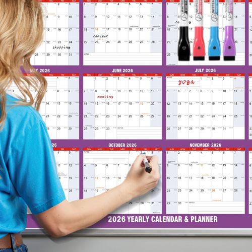 - Built for long-lasting use, this $2026$ wall calendar features a premium double-sided lamination with a smooth, glossy finish that allows markers to glide and wipe off cleanly even after months of use.