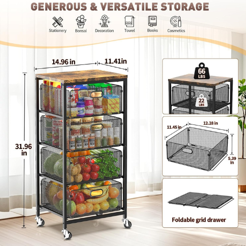 Hop over to Amazon and score up to 52% OFF on this 4-Tier Metal Rolling Cart w/ Drawers. Designed with a durable wooden top and a sturdy metal frame, capable of holding up to 156 lbs, ensuring stability and reliable storage for various items. It features smooth glide tracks and visible baskets to facilitate effortless organization and easy access, eliminating the hassle of rummaging through cluttered drawers. Additionally, built-in stops are included to prevent accidental falls, keeping all stored items secure.