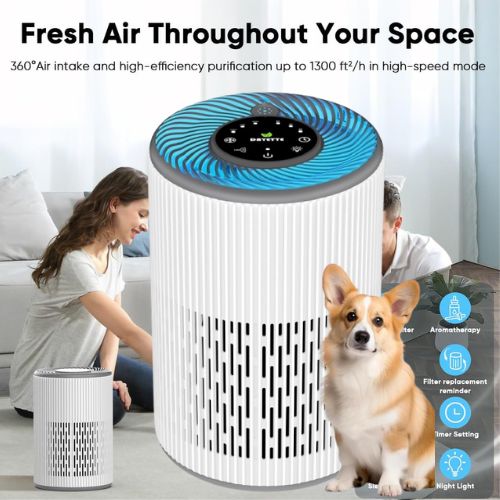 - High-Efficiency Purification: Covers up to 1300 ft² with 360° air intake, delivering 6 air changes per hour in a 216 ft² space—perfect for bedrooms, living rooms, offices, and more.