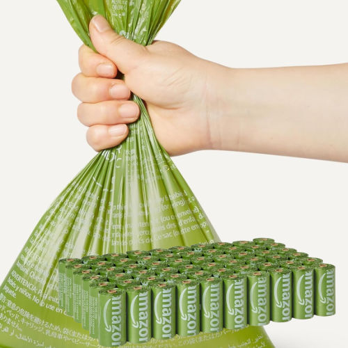 - 900-pack of disposable dog poop bags for cleaning up after your pet on walks and in public spaces