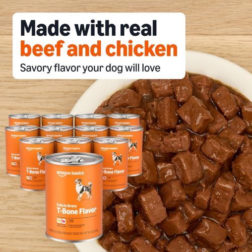 Amazon Basics Wet Dog Food, T-Bone Flavor, 12-Pack as low as $14.53 Shipped Free – $1.21/Can