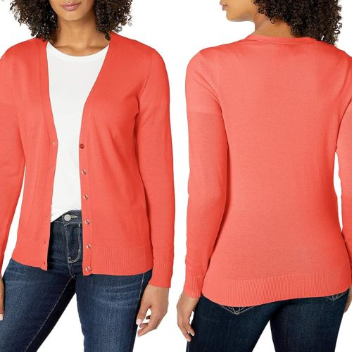 Amazon Essentials Women’s V-Neck Cardigan Sweater from $8.45 – Coral Pink in XS, S, M and XL – 23.8K+ 4.4/5⭐