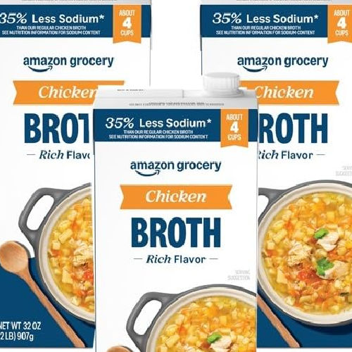 Amazon Grocery 35% Less Sodium Chicken Broth, 3-Pack as low as $2.81 when you buy 4 + Free Shipping – $0.94/Carton, 1.6K+ 4.7/5⭐