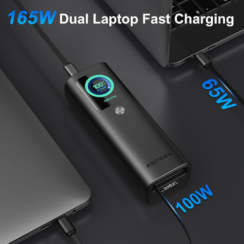 - Unstoppable Power, Unmatched Portability: The AsperX Laptop Power Bank features a compact design, 20% smaller than usual while maintaining high performance. It offers over 24 hours of battery life, making it suitable for professionals, travelers, and students to charge laptops, phones, and other devices during work, hikes, or flights.