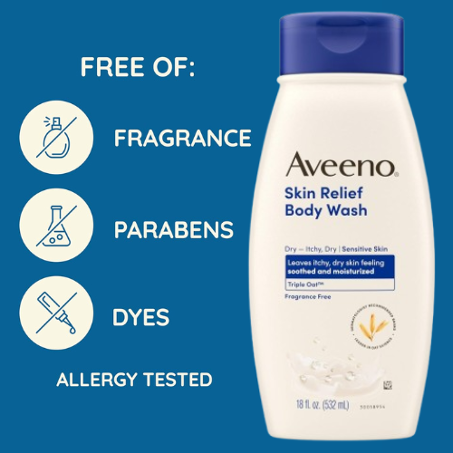 - This skin relief body wash from a dermatologist recommended brand is allergy tested & formulated for sensitive skin. The gentle body wash is made free of fragrance, parabens, dye & soap