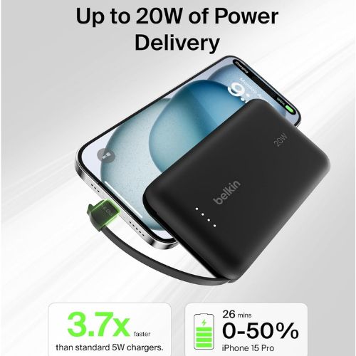 Belkin 10000mAh Portable Charger with Built-In Cable (Black) $14.99 (Reg. $40) – 400+ 4.4/5⭐