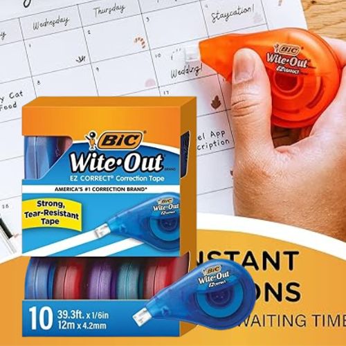 Hop over to Woot and get a deal on BIC White Out Correction Tape, 10-Pack (1/5-Inch x 39.4-Ft). Fix mistakes instantly with this dry-application correction tape—you can write over it immediately. Tear-resistant and film-based, it offers easy, convenient corrections. The translucent body lets you see the remaining tape, making it simple and user-friendly. You may also need this Scotch Desktop Tape Dispenser (Two-Tone Black)