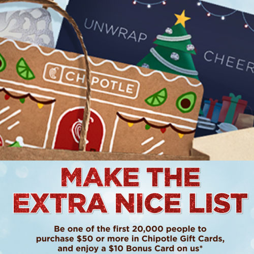 Buy a Chipotle $50 Holiday Gift Card, Get a $10 Promotional Code