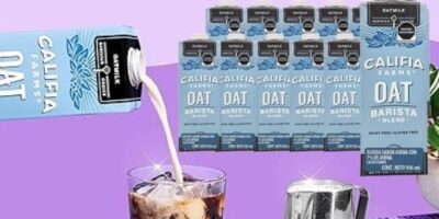 Califia Farms Oat Barista Blend Oat Milk, 12-Pack $29.99 – $2.50/Carton – 13.8K+ 4.5/5⭐