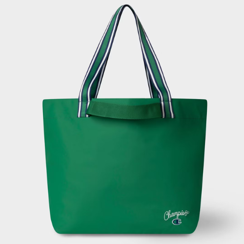Hop over to Target and score 50% OFF on this Champion Harbor Tote Bag. Featuring a durable green polyester shell. It is a spacious, unstructured, open-top shopper designed for the beach, gym, or daily use, with internal pockets and a key clip for organization.