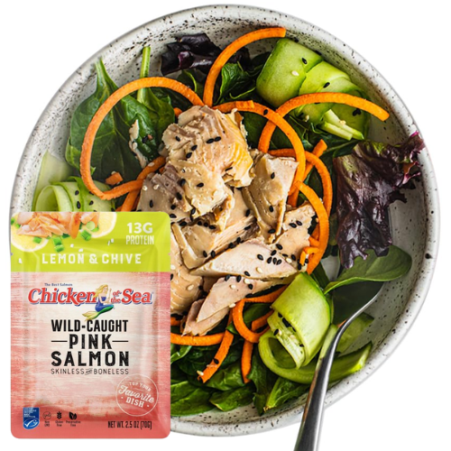 - Enjoy high-quality, wild-caught pink salmon that is perfectly seasoned with lemon and chives and made with 100% natural ingredients.