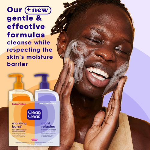 • This dermatologist-tested set features two 8 fl oz bottles—a Vitamin C-infused Morning Burst to energize your skin and a Night Relaxing wash to gently soothe away the day’s impurities.