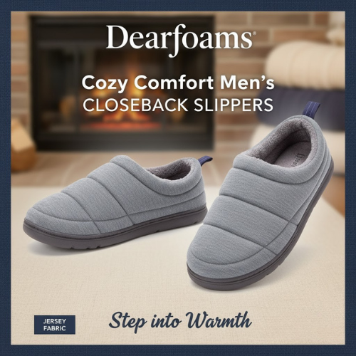Dearfoams Cozy Comfort Men’s Jersey Closeback Slippers $8 (Reg. $20)