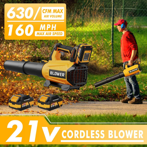 - Excellent Blowing Performance – The upgraded motor operates at 19000 RPM and, combined with the mesh air intake design, delivers an airflow of 630 CFM and a wind speed of 160 MPH, making it efficient for clearing leaves, snow, and dust. An adjustable constant-speed knob allows for continuous operation without finger fatigue.