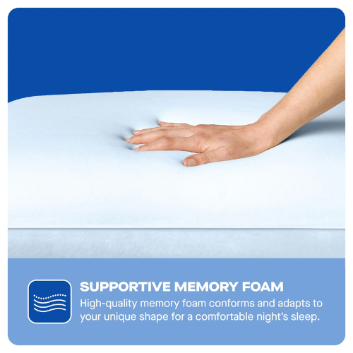 - Molded memory foam offers adaptive support, gently conforming to the head and neck for all sleep positions