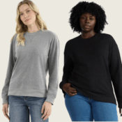 Women's Long-Sleeve Fitted Top, 2-Pack $7.49, $3.75 Each + Crewneck Sweatshirt...