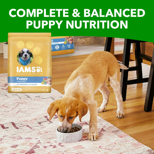 Give your growing pup the best start with Iams Proactive Health Large Breed Dry Puppy Food. Specifically formulated for the unique nutritional needs of large breed puppies (those that will grow to over 50 lbs), this recipe features real, farm-raised chicken as the #1 ingredient. It’s packed with 22 key nutrients similar to those found in mother’s milk, including Omega-3 DHA to support healthy brain development and make your puppy smarter and more trainable. With tailored levels of calcium and phosphorus, it also ensures their large bones and joints develop at the right pace.
