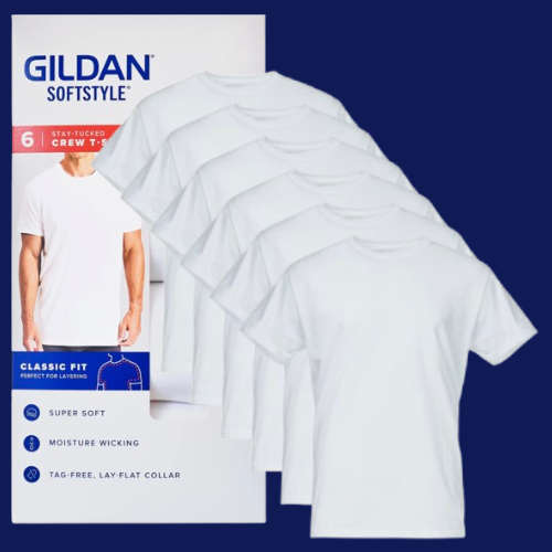 Gildan Men’s Softstyle Crew Neck Tees, 6 Pack $12.59 (Reg. $17.98) – $2.10 Each – M to 2XL – 1.3K+ 4.6/5⭐