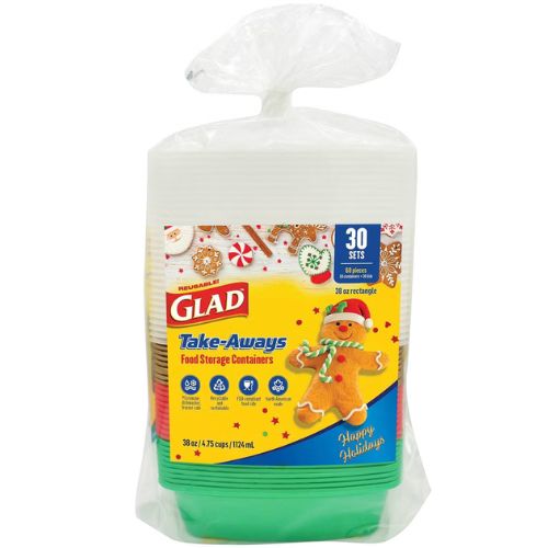 Glad Take-Aways Holiday Food Storage Containers, 30-Pack w/ Lids $8.49 (Reg. $16.99) – 28¢ Each