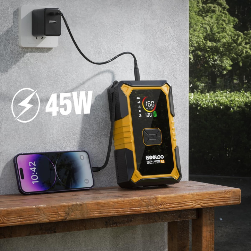 Looking for a reliable all-in-one device that can handle those unexpected roadside moments? The GOOLOO A5 Car Jump Starter with Air Compressor might just become your new best friend. Designed for anyone who drives regularly or takes road trips, this compact gadget packs a punch with its 4000A jump starter that works on all gas engines and diesel up to 10L. It also features a built-in air compressor capable of inflating tires up to 160 PSI, which means no more scrambling for a gas station when your tire is low. Plus, with a 45W power bank, you can charge your phone or other devices on the go, making it super handy during long drives or emergencies.