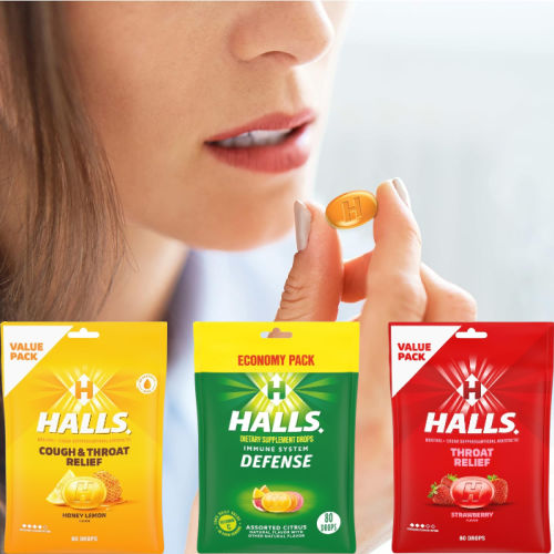 - Use Halls cough drops with allergy medication for added relief