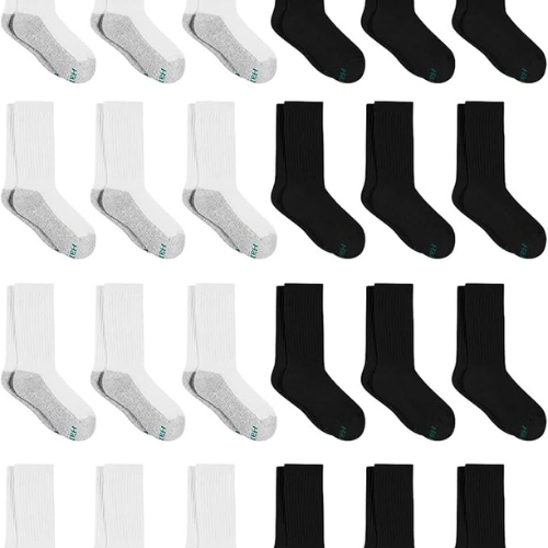 Hanes Boys’ Crew Socks, White/Black 24-Pack $13.18 (Reg. $20) – 55¢/sock! 260+ 4.6/5⭐