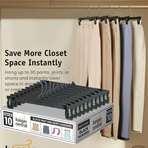 Hanger Central 10-Pack Black 12″ Plastic Pants Hangers with Clips $3.98 (Reg. $7.98) – 40¢ Each – 1.3K+ 4.3/5⭐
