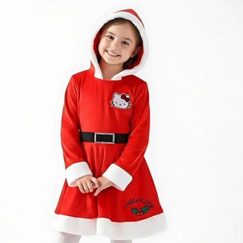 Hop over to Amazon and get a deal on Hello Kitty Sanrio Girls Christmas Santa Dress. Available for big kids sizes 4-12. Bring home the magic of Sanrio with the officially licensed Hello Kitty Cosplay Hooded Long Sleeve Dress. Perfect for girls who love kawaii fashion, this cozy red dress features a comfortable hood and a vibrant Hello Kitty screen-print patch, making it a fun and festive outfit for holidays or everyday play. Pair this cozy hooded dress with the Hello Kitty and Friends Halloween Countdown Calendar for a full month of festive fun leading up to Halloween.