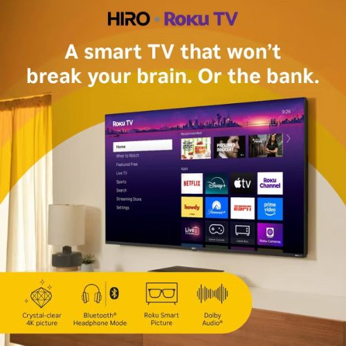 Hiro also gives you instant access to America’s #1 streaming experience with built-in Roku TV. That means all your favorite apps in one place, easy navigation, free channels, quick search, and fun extras like trivia games and even a stroll through Roku City. With Dolby Audio enhancing the sound, this TV brings movies, shows, and sports to life without a hefty price tag.