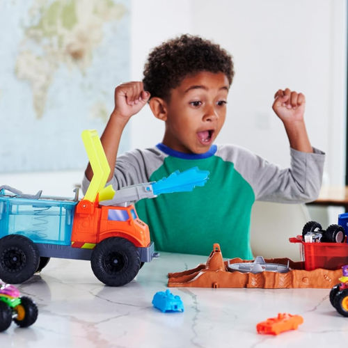 Hop over to Amazon and get a deal on Hot Wheels Monster Trucks Arena Smashers Color Shifters 5-Alarm Rescue Playset. Color-changing action is on fire with this set! Kids drive the included Monster Trucks toy fire truck into a removable flatbed’s ice-cold water tank to initiate the first color change before aiming for a wall of flames behind a grandstand. Crash into the blast site, and 5-Alarm crashes into the stands – the two included smashable cars and the Monster Truck tumble into the piping-hot water, and 5-Alarm changes color once again! This is a great deal, compared to $26 at Amazon.