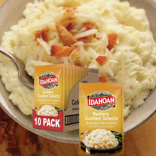 Idahoan Buttery Golden Selects Mashed Potatoes, 10-Pack as low as $7.03 Shipped Free – $0.70/Pouch or $0.15/Serving, 3.1K+ 4.7/5⭐