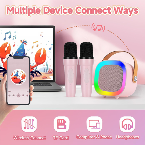 - Wireless Connection Karaoke Machine: The kids speaker utilizes wireless connection technology, allowing children to easily link a tablet or phone within a 50-foot range to access their favorite songs online. It supports headphone and SD card insertion for saving and playing a large number of songs, helping to create lasting memories.