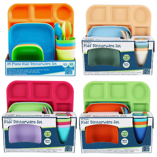 Kid’s 24 Piece Plastic Dinnerware Set $5.96 – 3 Colors