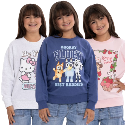 Score a HOT Walmart Black Friday deal on Kids’ Character Graphic Crewneck Sweatshirt, Shipped Free for Walmart+ Members. This cozy pullover for girls is perfect for fans of the hit show. It’s crafted in comfortable, soft fabric that’s gentle on her skin and great for her everyday adventures. This is available in various patterns such as Bluey, Hello Kitty & Friends, Sonic Hedgehog, Stitch, and Strawberry Shortcake. Sizes range from Extra Small to XX-Large.
