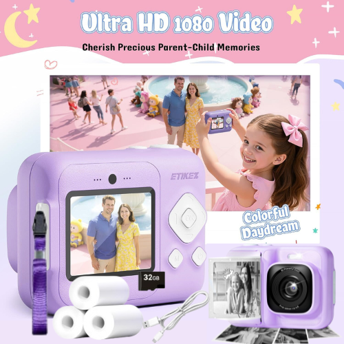 Click, print, and create magical memories instantly. This Kid’s Instant Digital Camera, Instant Print & Video prints black-and-white photos within 1 second using thermal technology while saving full-color images on a 32GB SD card. It includes three rolls of printing paper, allowing children to snap, print, and doodle on their creations. The multifunctional camera also records 1080P HD videos and features a 2.4″ screen, 6x zoom, flash, games, filters, and MP3 capabilities. It is designed with a durable, shockproof shell and uses BPA-free paper, making it safe for kids. Suitable for ages 4-12, it encourages creativity and serves as an excellent gift option, reducing screen time. The complete kit comes with everything needed to capture memories easily. Right now you can snag this for as low as $14.99 when you use the coupon code NHDHEHWF. Through 02/25/26 or while supplies last.