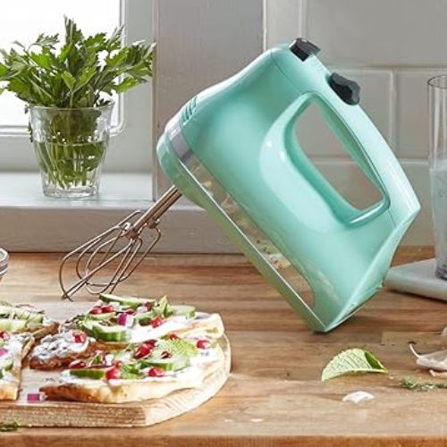 Hop over to Amazon and get a deal on KitchenAid 5 Ultra Power Speed Hand Mixer, Ice Blue. Compact, lightweight and great for your everyday mixing needs. This hand mixer features 5 speeds, 2 Turbo Beater Accessories and the power and control to mix up your favorite cookie dough, mashed potatoes and so much more. Slowly stir in chunky ingredients, like nuts or chocolate chips, at speed one or whip egg whites or heavy cream at speed five. Available in various colors. You may also like this Magic Bullet 7-Piece Blender Set