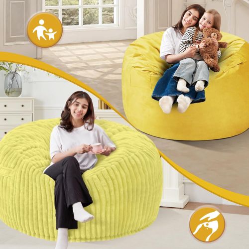 You may also like the 3FT Bean Bag Chair (36” x 36” x 22”), a slightly smaller option in a soft yellow Dutch corded plush cover—perfect for tighter spaces while still offering the same cozy, memory foam comfort. Use the coupon code XZOMXR4T to drop the price to $32.49 regularly $64.99.