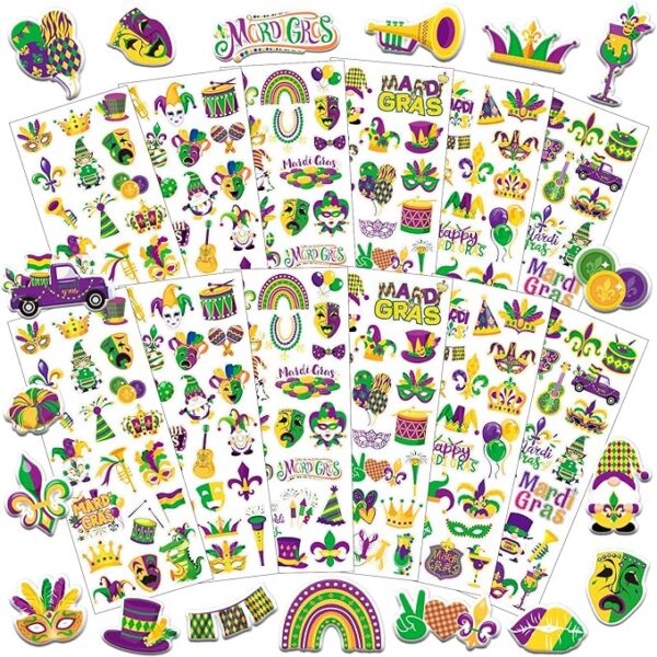 3D Puffy Mardi Gras Stickers, 240-Pack