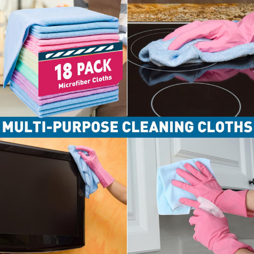 Microfiber Cleaning Cloths, 18 Pack, 5 Colors Assorted as low as $4.27 Shipped Free (Reg. $7.44) – 24¢/cloth! 1.6K+ 4.5/5⭐