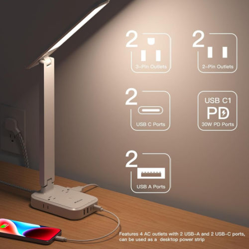 Hop over to Amazon and get a deal on this Power Strip with LED Desk Lamp, 4 Outlets, & 4 USB Ports. The power strip has 2 USB-C ports, 2 USB-A ports, 2 3-prong AC outlets, and 2 2-prong AC outlets for charging your phone, tablet, kindle, watch, and other electronic devices all in one place. The lamp can be adjusted up and down, right or left at 180° angles, and can be adjusted to cold, neutral, or warm colors. The lamp has no flicker, no glare, blue light, or ghosting, designed to minimize eye strain during long reading or working sessions.This is a great deal, compared to $14 at Walmart.