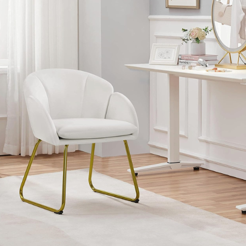 Serves as trendy seating for makeup, working, or reading, while enhancing room decor. This FAB Rated Modern Velvet Vanity Chair features a plush velvet seat adorned with a blooming flower motif. Its unique design includes arms and a backrest that mimic flower petals, providing a comfortable leaning experience. The flared backrest is specifically shaped for head support during relaxation, while the padded, round armrests align perfectly with the user’s arms for added comfort. To maintain stability on uneven floors, adjustable levelers are included, and rectangular-shaped caps on the legs help protect the floor from scratches and scuffs. With a compact footprint, this versatile chair fits well in various settings such as makeup rooms, living rooms, dining rooms, bedrooms, and home offices, making it ideal for smaller spaces. Right now you can snag this for just $59.99. Through 05/04/26 or while supplies last.