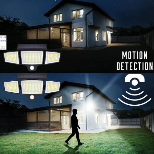 Motion Sensor Outdoor Solar Flood Lights with Wireless Remote, 2-Pack $16.99 – $8.50 each, with 3 Adjustable Lighting Modes