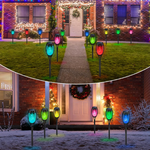 - These lovely 2.9 x 20.5 inch torch lights are the ideal size for Christmas yard decorations, adding a unique, colorful flame-like glow to your pathways and garden.