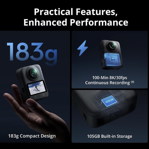 Capture every thrill in stunning clarity and detail. Osmo Waterproof 360° Camera features groundbreaking 1-inch 360° imaging, it enhances low-light image quality, enabling sharper shots with 8K 360° videos and 105GB built-in storage. The 360 camera captures vibrant panoramas and super-smooth 4K/120fps videos with a 170° view. It offers 120MP 360° photo capture, quick switching between 360° selfies and single-lens vlogs, and features a magnetic quick-release for motorcycle setups. The camera supports 8K/30fps video for up to 100 minutes, includes four microphones with Mono and Stereo modes, and is designed for both everyday users and creators. For updates, users can visit the official DJI website to download DJI Mimo. Right now get a Black Friday Deal on this for only $357.49. Through 12/02/25 or while supplies last.
