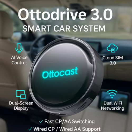 Turn your factory car screen into a full smart infotainment system with the Ottocast P3 Pro Wireless CarPlay Box. This powerful 3-in-1 Android AI box lets you enjoy Wireless CarPlay, Android Auto, and a full Android system in one compact device, making every drive more convenient and entertaining. With a generous 8GB RAM + 128GB storage, it runs smoothly even when multitasking, so streaming apps and navigation work without lag.