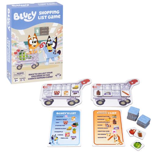 Join Bluey, Bingo, Bandit and Chilli on a fun-filled supermarket adventure in the Bluey Shopping List Game! From sweet lollipops and crunchy corn chips to fragrant flowers and jars of peanut butter, it’s a race to see who can fill their trolley first—no time to dilly-dally!