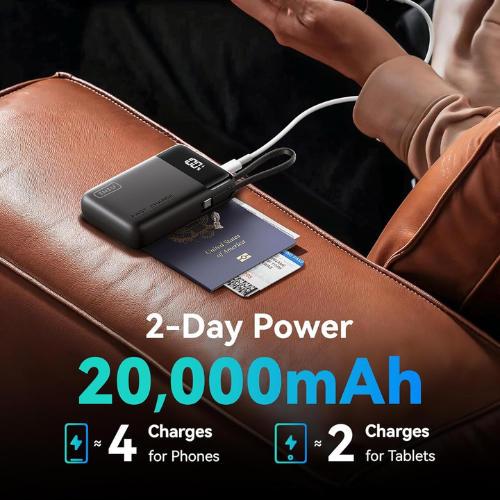 Power Bank 20000mAh with Built-In USB-C Cable $31.34 – Black or White, 1.4K+ 4.3/5